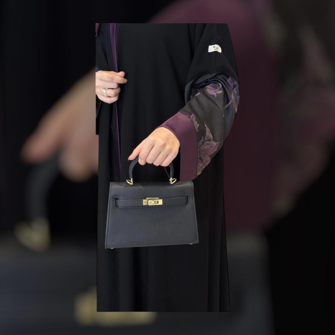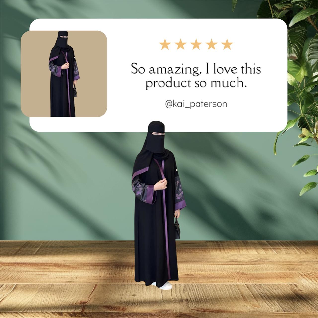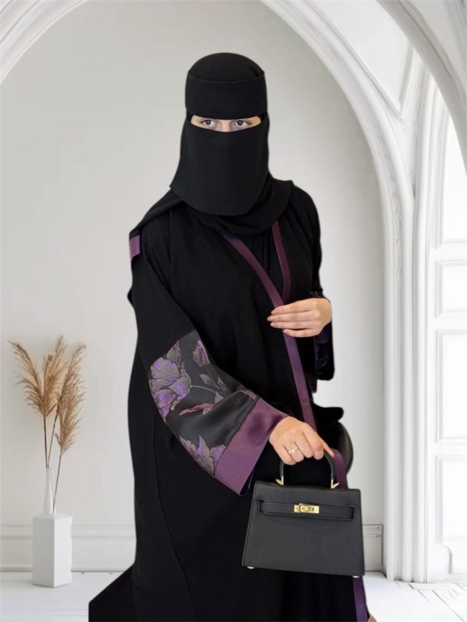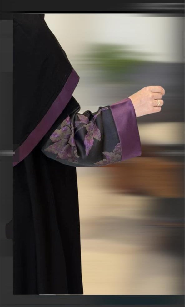 Liara “Elysia” Abaya – Black with Violet Floral Accents